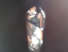 entro con vestaglia nera trasparente lingerie nera trasparente. (micro perizoma a filo e reggiseno morbido con tacchi)